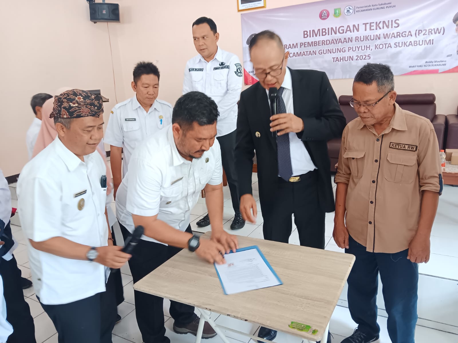 Kecamatan Gunung Puyuh, Rabu 8 Oktober 2025 – Pemerintah Kecamatan Gunung Puyuh Kota Sukabumi menyelenggarakan kegiatan Bimbingan Teknis (Bimtek) Program Pemberdayaan Rukun Warga (P2RW) yang diikuti oleh para Ketua RW se-Kecamatan Gunung Puyuh. Kegiatan ini dilaksanakan di ruang pertemuan Kelurahan Gunung Puyuh pada Rabu (8/10/2025).